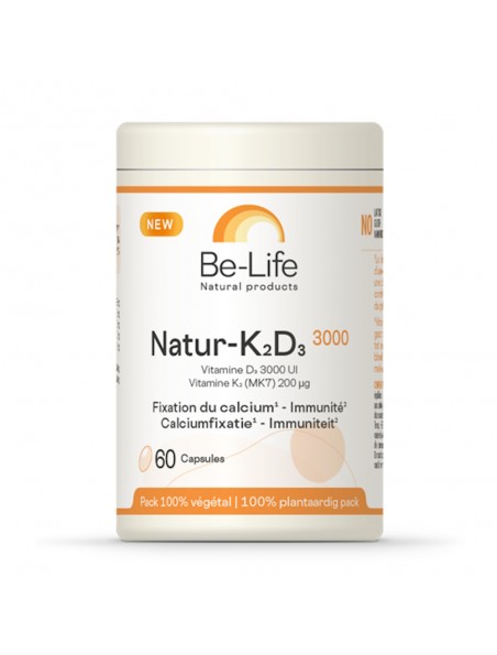 Natur-K2-D3 3000 du laboratoire Be-Life est un complément alimentaire permettant de soutenir l'immunité et les articulations.