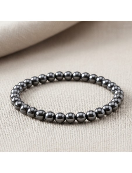 Le Bracelet Boule Hématite est un bijou d'oxyde de fer hydraté, variant du noir au rouge.