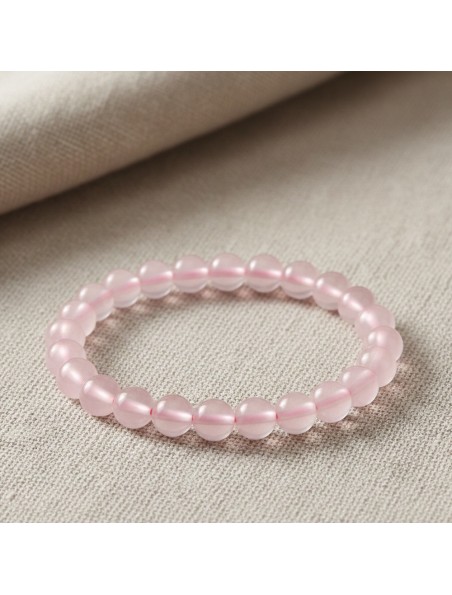 Le Bracelet Boule Quartz Rose est un bijou de dioxyde de silicium possédant des variations de rose presque transparent.