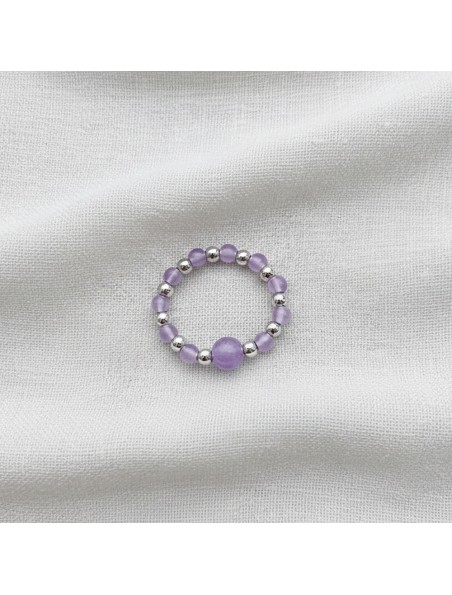 La Bague Hématite et Améthyste est un bijou d'oxyde de fer hydraté, de dioxyde de silicium et de fer qui présente des couleurs violettes et argentées.