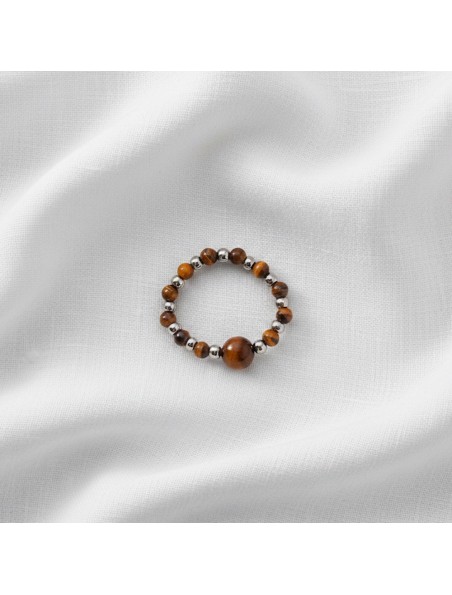 La Bague Hématite et Oeil de Tigre est un bijou d'oxyde de fer hydraté et de quartz chatoyant qui présente des couleurs dorées et argentées.