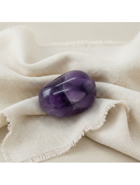 La Pierre Roulée Améthyste est composée de dioxyde de silicium et de fer qui présente une couleur violette.