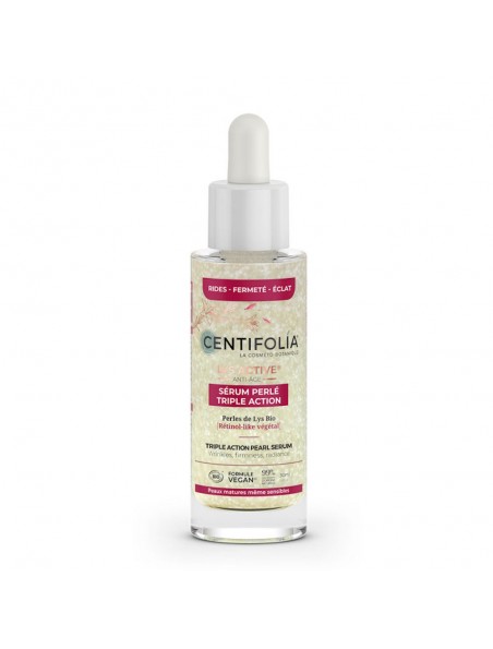 Le Sérum Perlé Triple Action Lys Active Bio du laboratoire Centifolia est un soin concentré et léger pour les peaux matures et sensibles.