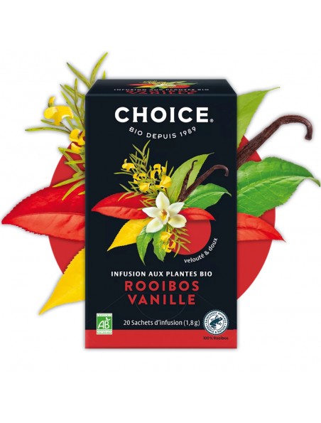 Rooïbos Vanille Bio du laboratoire Choice est une infusion délicate pour une harmonie parfaite de saveurs.