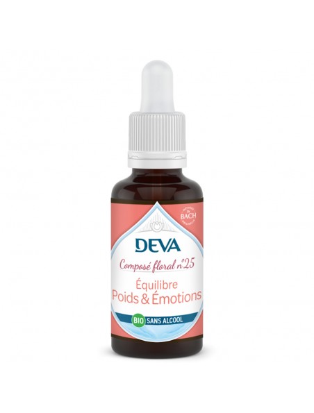 Equilibre Poids et Emotions n°25 Sans Alcool Bio du laboratoire Deva est conseillé à ceux qui ont besoin d'accompagnement dans le rééquilibrage alimentaire.