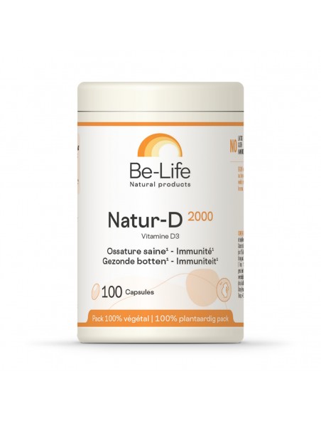 La vitamine D contenue dans Natur-D 2000 de Be-Life joue un rôle capital dans l'assimilation et la fixation du calcium. Elle contribue ainsi à la formation et au maintien d'une ossature saine et de dents solides.