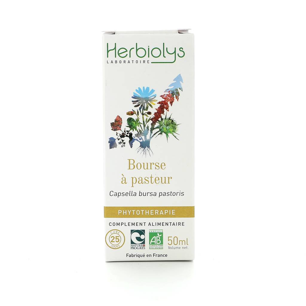 Eau, Alcool bio*, Bourse à pasteur* (Capsella bursa pastoris).