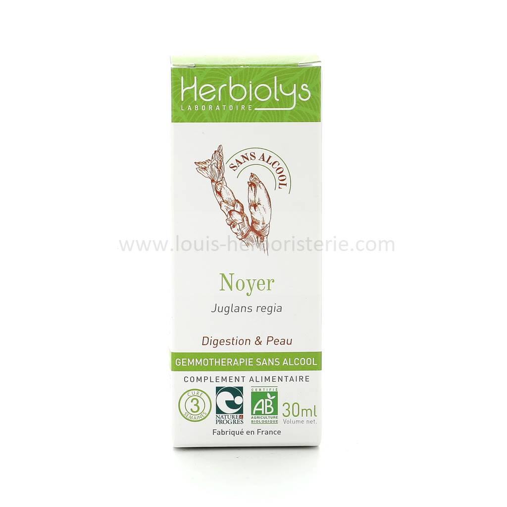 Le macérât de bourgeons frais de Noyer Sans Alcool Bio du laboratoire Herbiolys permet de restaurer la flore intestinale.