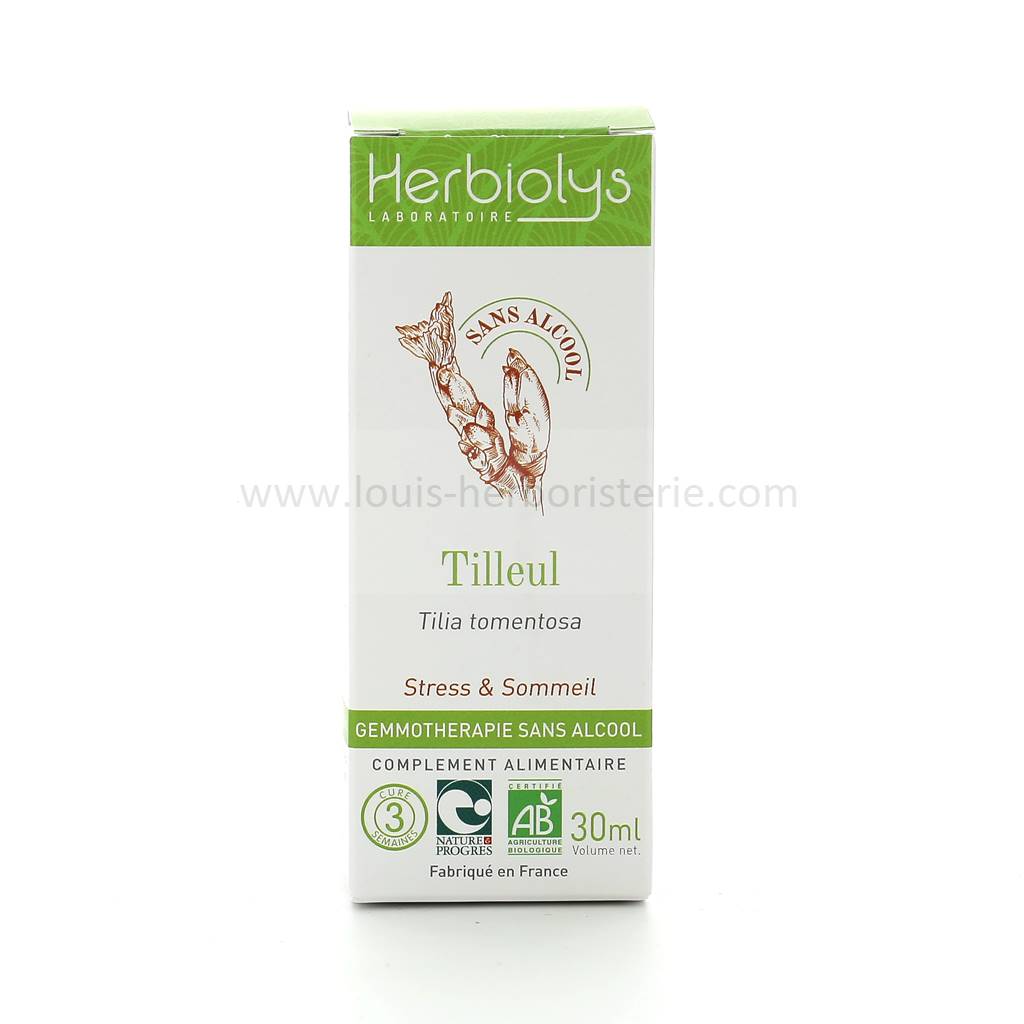 Le macérât de bourgeons frais de Tilleul Sans Alcool Bio du laboratoire Herbiolys apaise le système nerveux.